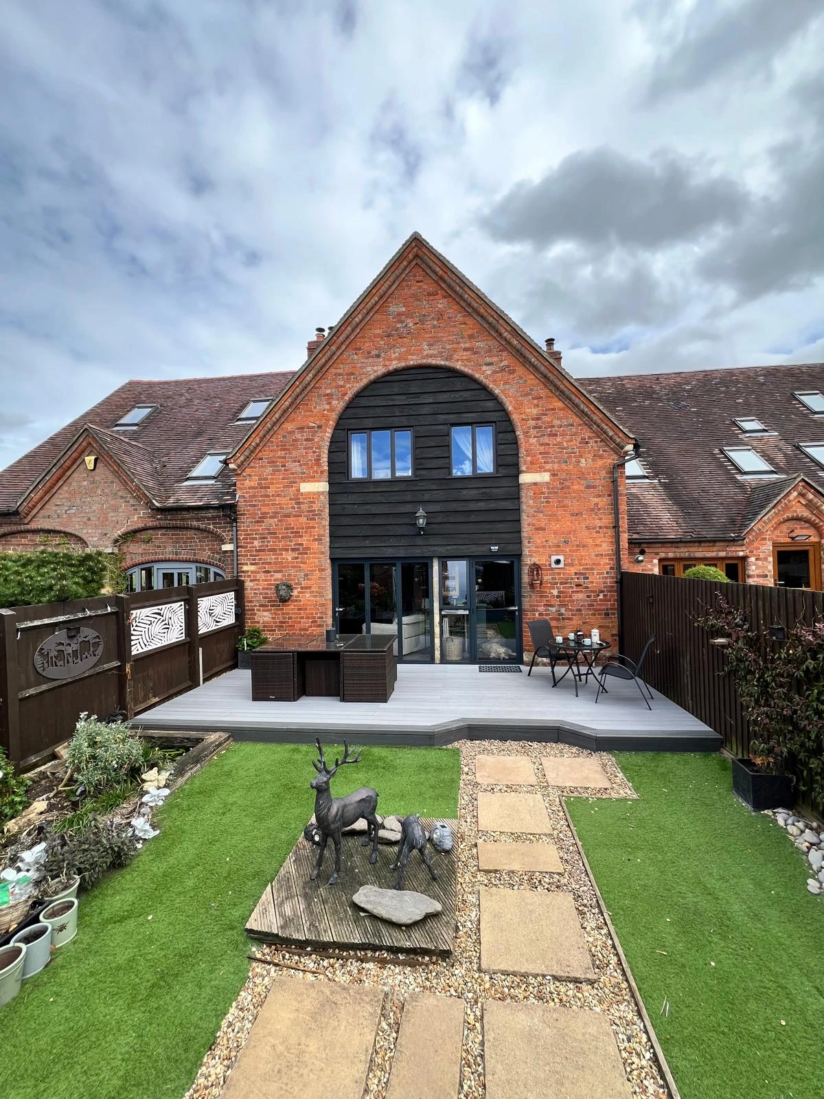 A neglected garden reimagined into a stunning rustic retreat, featuring reclaimed brickwork, a charming patio, and vibrant planting—blending timeless character with thoughtful design.