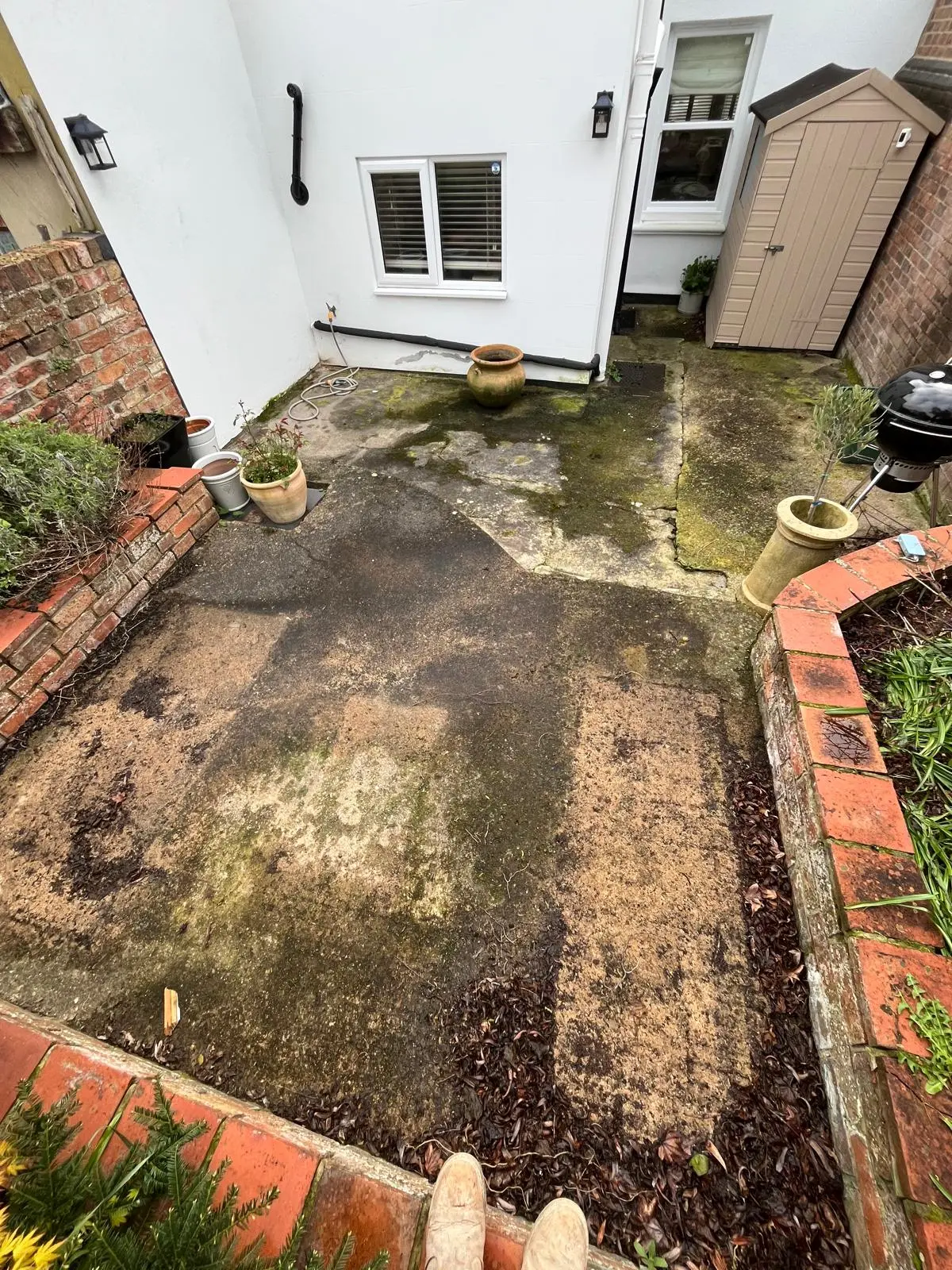 The existing garden was entirely concrete, with a poor layout and an awkward slope that made the space feel even smaller. Access was limited, and the design didn’t make practical use of the area. Overall, it felt outdated, restrictive, and unusable as a comfortable outdoor space.